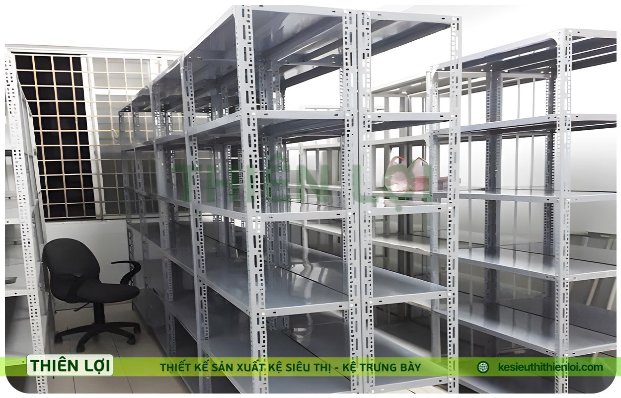 KỆ SIÊU THỊ THIÊN LỢI – Chuyên sản xuất & lắp đặt kệ sắt V lỗ tại Kon Tum